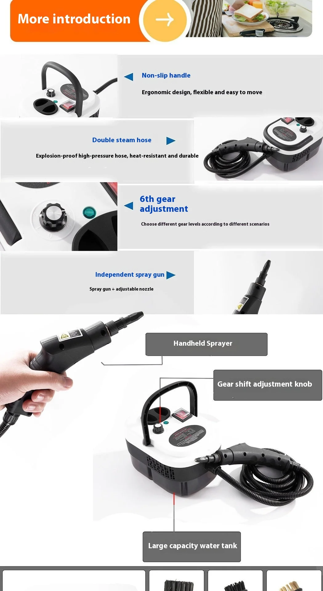 - Multi-Functional Attachments Included:Equipped with 6 brush heads, an extension rod, and targeted nozzles, this steam cleaner handheld model adapts to a wide range of scenarios—from scrubbing stovetops to detailing car interiors. It’s your all-in-one solution for whole-home cleaning.