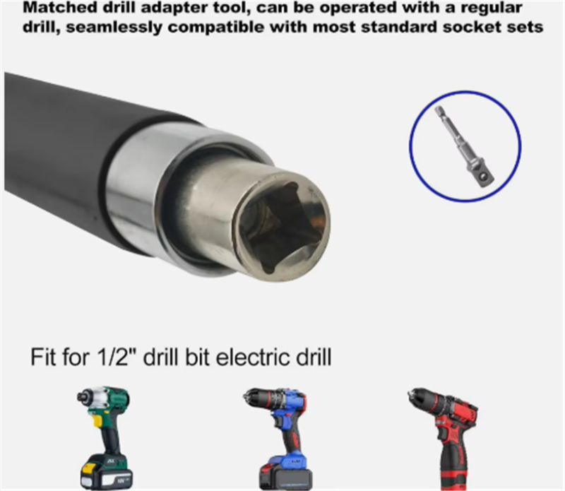 What’s Included: 1x Electric Drill Adapter, 1x 1/2" to 3/8" Joint, 1x 3/8" to 1/2" Joint, 1x 3/8" to 1/4" Joint, 1x 1/4" to 3/8" Joint.Offset Extension Wrench for Electric Drill,Impact Wrench Extender for Socket Set